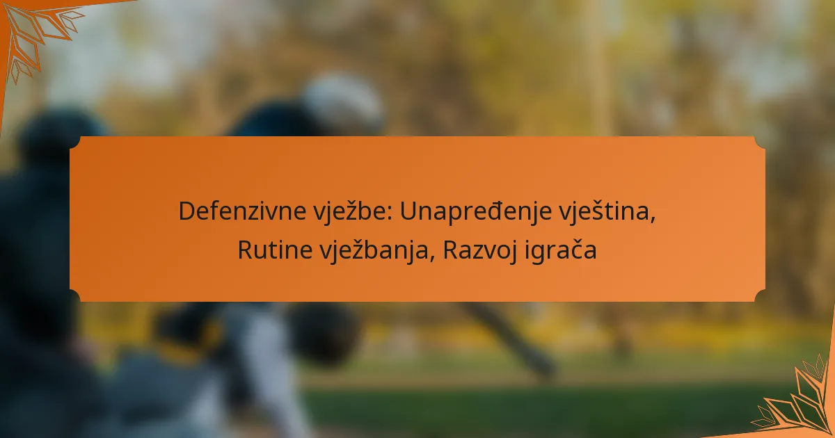 Defenzivne vježbe su specifične vježbe koje se fokusiraju na podučavanje igrača kako učinkovito braniti protivnike. Ove vježbe mogu se značajno razlikovati ovisno o sportu, ali obično naglašavaju pozicioniranje, anticipaciju i vještine reakcije. Uobičajeni primjeri uključuju defenzivne scenarije jedan na jedan, vježbe zonirane obrane i vježbe situacijske svijesti.