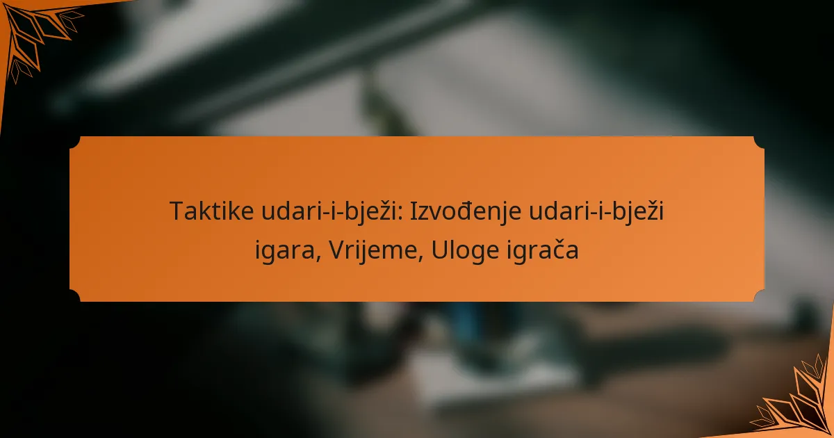Uspješne taktike udarca i bijega uvelike ovise o preciznom tajmingu i koordinaciji među igračima. Svaki igrač mora znati kada započeti svoje kretanje i kako reagirati na akcije suigrača. Dobro tempirana igra može iznenaditi obranu, dok loš tajming može dovesti do neučinkovite izvedbe.