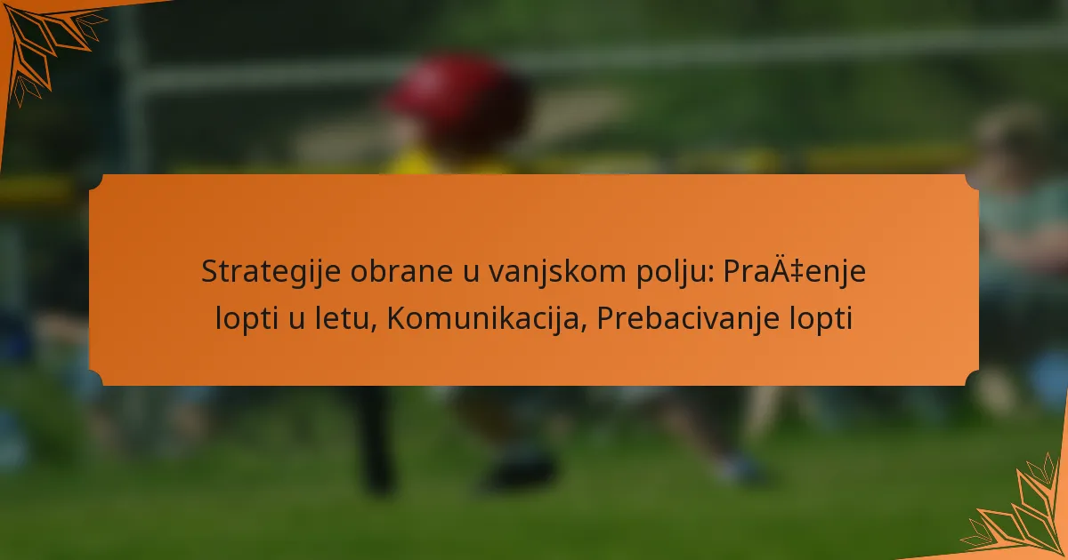 Učinkovite strategije obrane u vanjskom polju ključne su za minimiziranje trčanja protivničkog tima, s naglaskom na praćenje lopti u letu, održavanje jasne komunikacije i izvođenje preciznih dodavanja. Ovladavanjem ovim vještinama, vanjski igrači mogu poboljšati svoju izvedbu i značajno doprinijeti ukupnom uspjehu tima na terenu.
