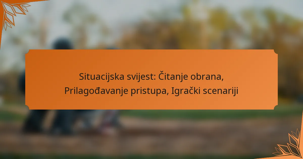 Situacijska svijest u sportu odnosi se na sposobnost percipiranja i razumijevanja dinamike okruženja igre, što može biti pod utjecajem različitih scenarija. Ključne situacije uključuju trenutke visokog pritiska, promjene u strategijama protivnika i okolišne distrakcije koje zahtijevaju od sportaša da prilagode svoje pristupe u stvarnom vremenu.